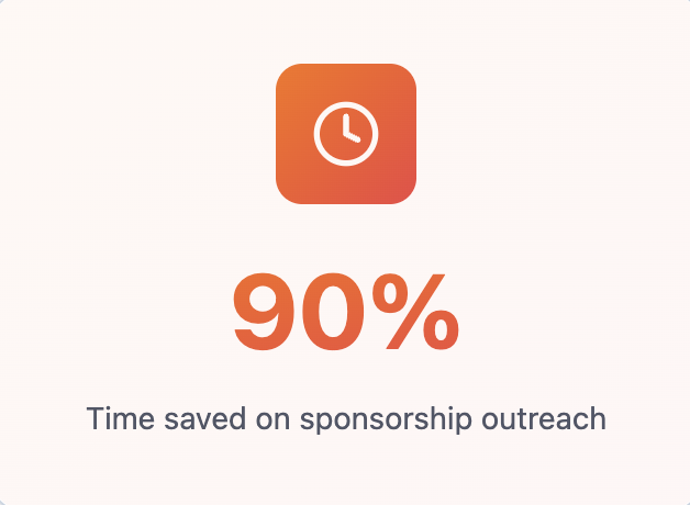 I handle all the prospecting and outreach for your sponsorship program. I find the right businesses, reach out on your behalf, nurture the interest, and book sponsor calls directly onto your calendar only after they have shown intent to learn more. This saves you all the time, follow up, and nurturing it usually requires, while increasing your chances of success through high quality and high quantity outreach.